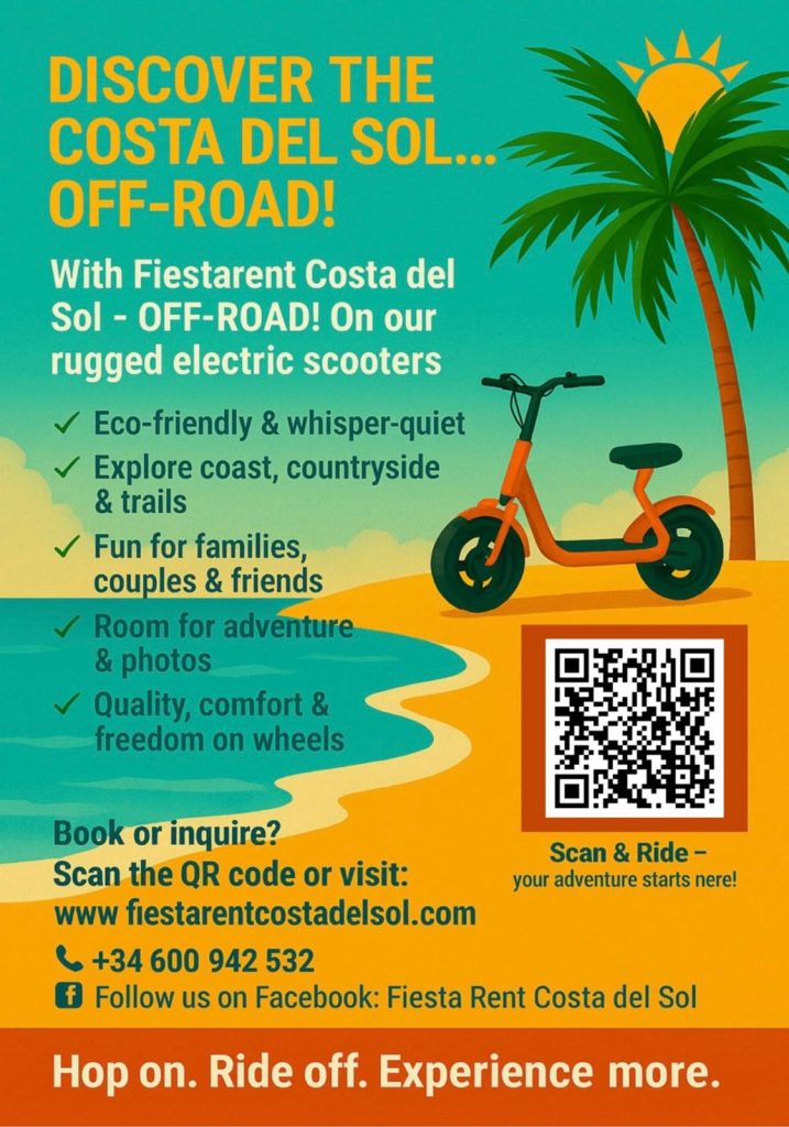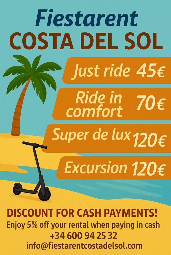 The electric scooters on the Costa del Sol offer the easiest and most convenient way to get to know the Costa. Don’t worry about long, exhausting walks or boring bus trips, choose Fiesta Rent Costa del Sol and get to explore the city in a way cooler, much fun way! Our sightseeing scooter tours have all the benefits of a pleasant sightseeing tour without unnecessary time-wasting.
